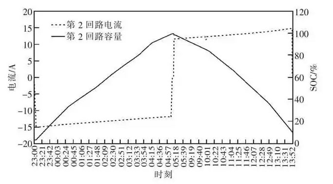 (3)第3 回路:選擇汽車退役的鉛酸蓄電池,標稱電壓為12 V,標稱容量為60 Ah,該回路由36 個單體電池串接構成,標稱容量為60 Ah,出口電壓為432 V。