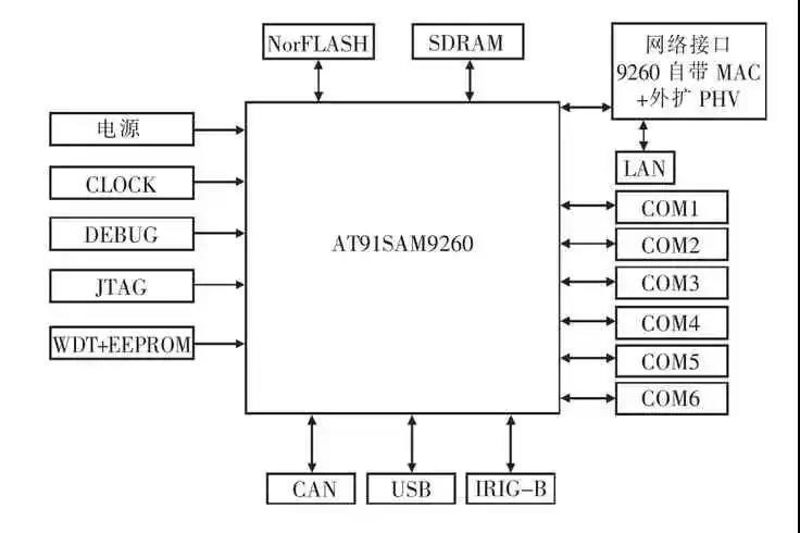 該控制器硬件以ARM9 處理器為核心,配置大容量的存儲器,擴展了6 個通信接口,每個通信口對應一個電池回路,將5 個回路從物理上分開,在信息上合并,各回路單獨運行,整體上協(xié)同一致??刂破饔布唧w配置如圖7 所示。