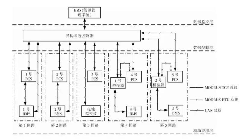 一套儲能電站的容量少則千瓦時級,多則兆瓦時級,需要由成千上萬節(jié)電芯串/并聯(lián)組成,對電池的一致性有著較高的要求,而退役動力電池回收來源和使用狀態(tài)各異,難以保證電池參數(shù)都接近?!凹词菇?jīng)過千挑萬選,仍無法避免在儲能系統(tǒng)運行過程中發(fā)生離散”[7]。電池一致性成為電力儲能應用的制約因素,而過多的篩選勢必增大應用成本。如果有一種方法做到不篩選或少篩選,將會極大提高梯次利用的商業(yè)化價值。本文介紹的就是基于這種想法的一個實際工程項目,其目的就是驗證一種“異構兼容”的方法,即通過控制手段來解決電池的不一致性問題,以實現(xiàn)對退役動力電池的最低成本應用,為大規(guī)模退役動力電池的應用做好技術儲備。