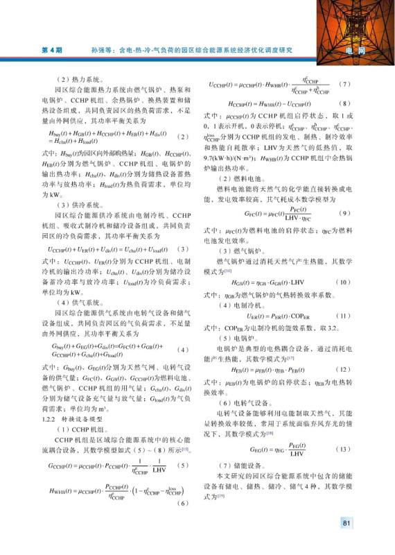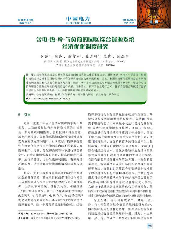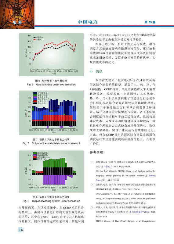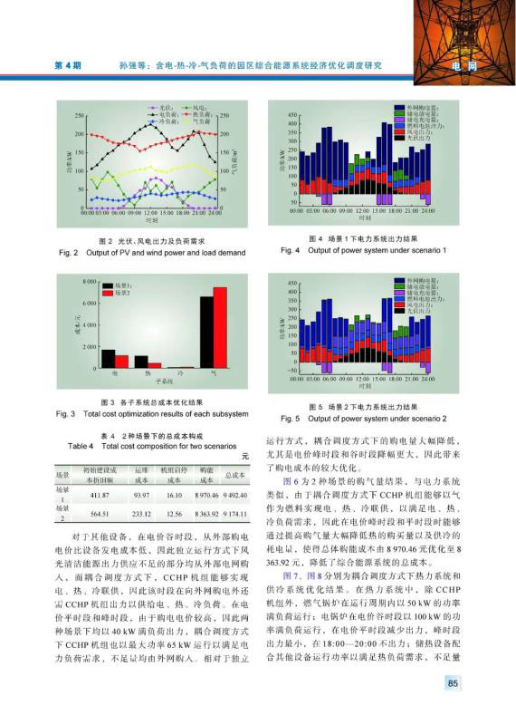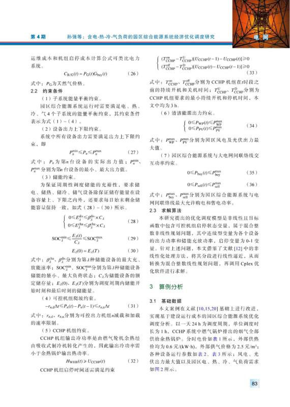 綜合能源系統(tǒng)是實現(xiàn)各能源系統(tǒng)間有機協(xié)調優(yōu)化的重要途徑。剖析電-熱-冷-氣4個子系統(tǒng),構建以建設運行總成本為目標的園區(qū)綜合能源系統(tǒng)經(jīng)濟優(yōu)化調度模型;其次,利用非線性問題處理辦法將所構建的調度模型轉化為混合整數(shù)規(guī)劃問題;最后,基于子系統(tǒng)獨立運行和耦合調度的2種場景,結合分時電價調用混合整數(shù)規(guī)劃軟件對模型進行求解。結果顯示,相對于獨立運行方式,各子系統(tǒng)耦合調度運行能夠靈活組合各能源轉換設備,大大降低系統(tǒng)外部購能和系統(tǒng)總成本。