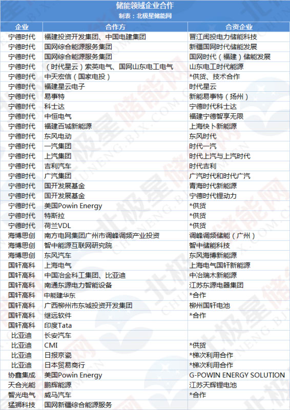 而在儲能行業(yè)里,還有很多類似的合作案例,企業(yè)都在通過“朋友圈”圈定市場、發(fā)揮各自優(yōu)勢,搶占市場資源。據(jù)北極星儲能網(wǎng)分析,這些合作目前主要分為四種。