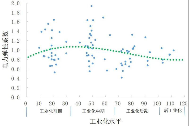 (2)電力彈性系數與工業(yè)化階段的關系