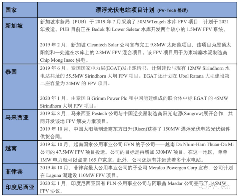 表1,至少6家東盟國(guó)家宣布了大規(guī)模漂浮光伏計(jì)劃