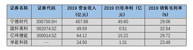 孚能科技與可比上市公司經(jīng)營數(shù)據(jù)對比如下: