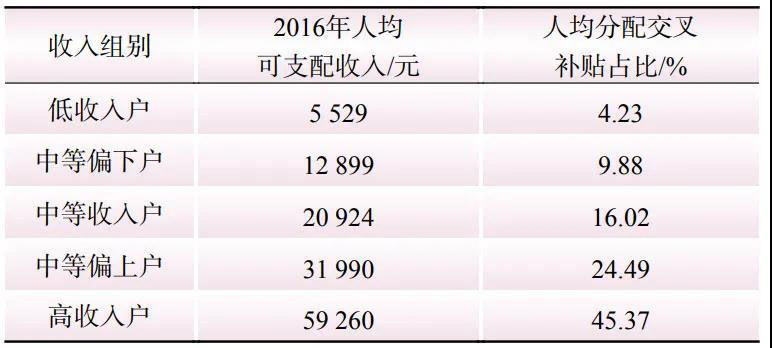 表1 “普惠制”特征下交叉補(bǔ)貼的人均分布情況