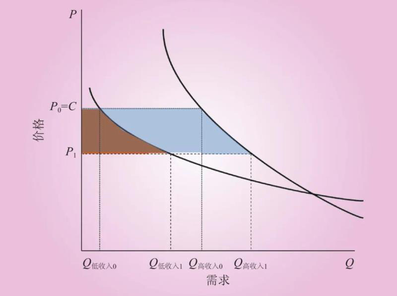圖3 交叉補(bǔ)貼對(duì)不同收入水平居民的福利影響