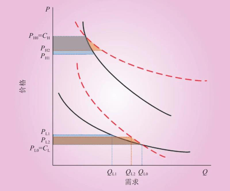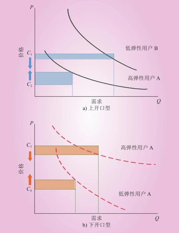 圖1 基于需求價(jià)格彈性的電價(jià)交叉補(bǔ)貼“開口”形態(tài)