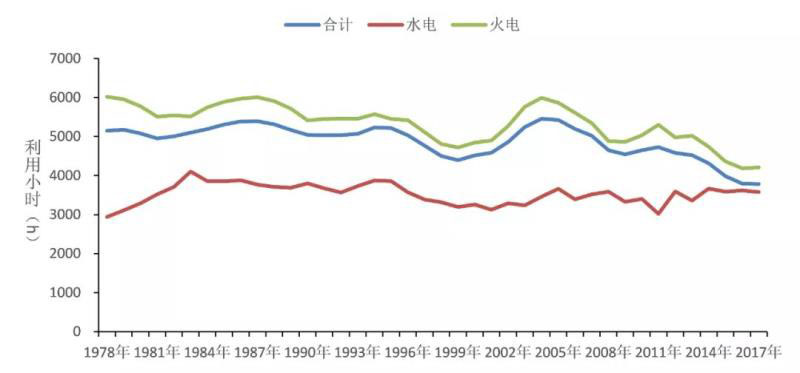 圖6 1978-2017年發(fā)電設備利用小時數(shù)