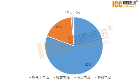 由于電化學儲能早期成本過高,中國國內(nèi)儲能項目多以政府項目為主,早期多采用鉛酸電池,但隨著國內(nèi)鋰電池技術不斷成熟,鋰離子電池因其能量密度高、使用壽命長、適用溫度范圍寬等特點,逐步替代鉛酸電池儲能。據(jù)鑫欏資訊統(tǒng)計,2019年,國內(nèi)電化學儲能累計裝機8.1Gwh,同比增長55.7%,繼續(xù)保持快速增長勢頭。其中,鋰離子電池在電化學儲能中的占比達到了81%,鉛酸電池下降到18%。