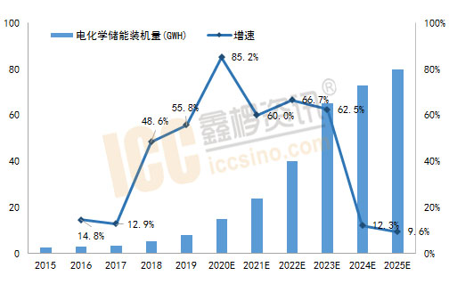 從2011-2019年,我國儲能產(chǎn)業(yè)發(fā)展飛快,儲能發(fā)展之快離不開各大發(fā)電企業(yè)及政策的支持。在19年經(jīng)歷了短暫的回落后,儲能領域在國內(nèi)電網(wǎng)側改革及政策支持下,市場發(fā)展迎來新的拐點。進入2020年,僅在電化學儲能領域市場產(chǎn)生明顯變革,國內(nèi)新招標的基站儲能、風電項目等均已明確表示不再使用鉛酸電池,鑫欏資訊預測,2025年國內(nèi)電化學儲能裝機規(guī)模將達到將接近80Gwh,未來幾年鋰電池儲能占比將達到95%以上,同時也為磷酸鐵鋰電池開辟一片新的廣闊藍圖。