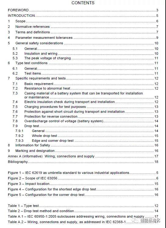 IEC 63056:2020 《Secondary cells and batteries containing alkaline or other non-acid electrolytes - Safety requirements for secondary lithium cells and batteries for use in electrical energy storage systems》于2020年3月27日正式發(fā)布。IEC 63056:2020由IEC TC21/SC21A歸口。