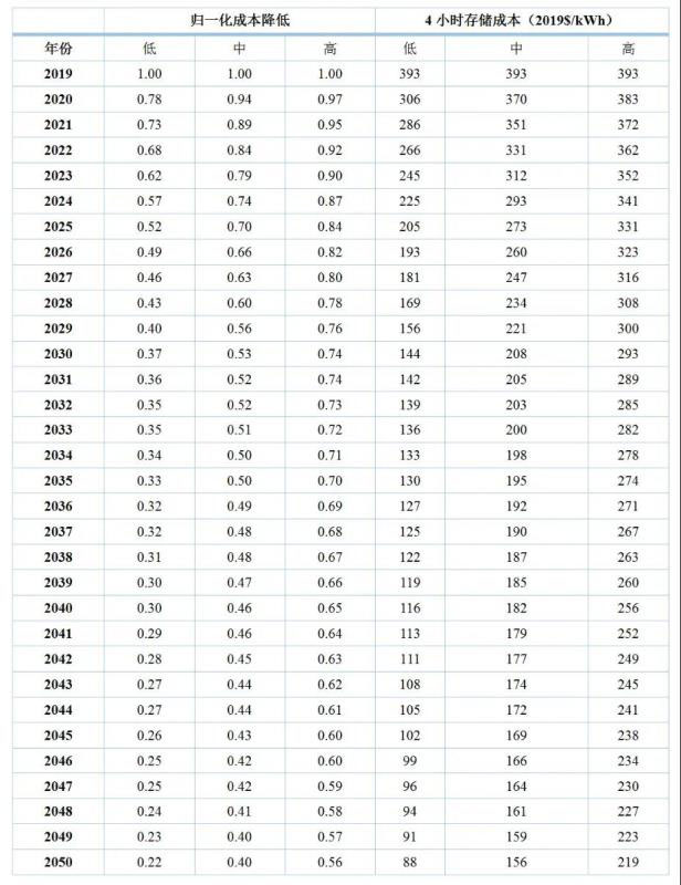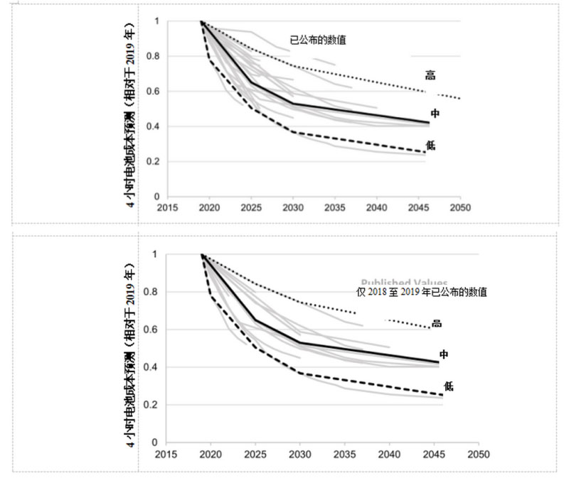 此外,如結果部分所示,我們選擇2019年基準成本作為當前存儲成本,基本上比2017年公布的所有2019年預測成本都要低。通過使用歸一化成本,我們可以更容易地使用這些2017年預測值來告知從較低的初始點開始的成本削減。