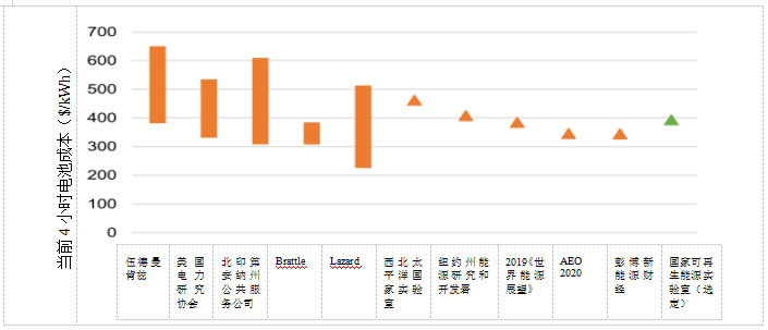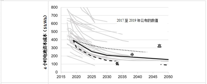 圖4.來自2018年或更晚發(fā)表的研究當前電池存儲成本