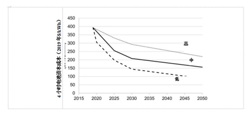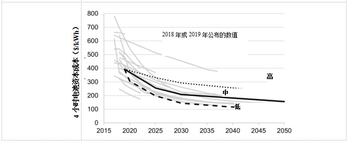 圖2.4小時鋰離子系統(tǒng)的電池成本預測值