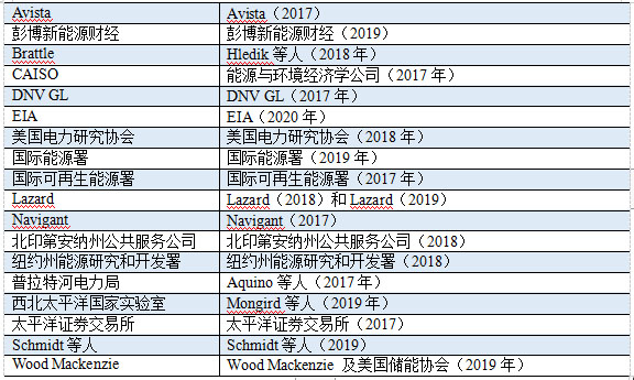 為了對當前文獻進行中立調查,本報告中包含的所有成本預測均具有同等權重。僅考慮了2017年或之后公布的存儲預測。然而,許多最新預測只不過是對舊預測做了匯總(就像本報告一樣)。例如,Comello和Reichelstein(2019)所做的預測是基于2017年或更早的出版物得出,而Nian,Jindal,an Li(2019)則使用了Cole等人(2016)和國際可再生能源署(2017)的預測結果進行成本預測。