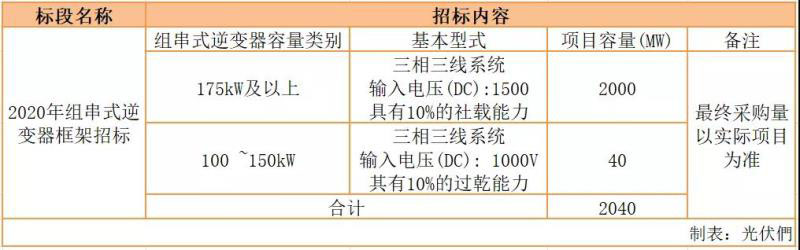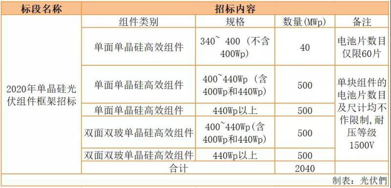根據(jù)招標(biāo)公告,本招標(biāo)項目劃分為2個標(biāo)段:單晶硅光伏組件框架招標(biāo);組串式逆變器框架招標(biāo),詳情如下: