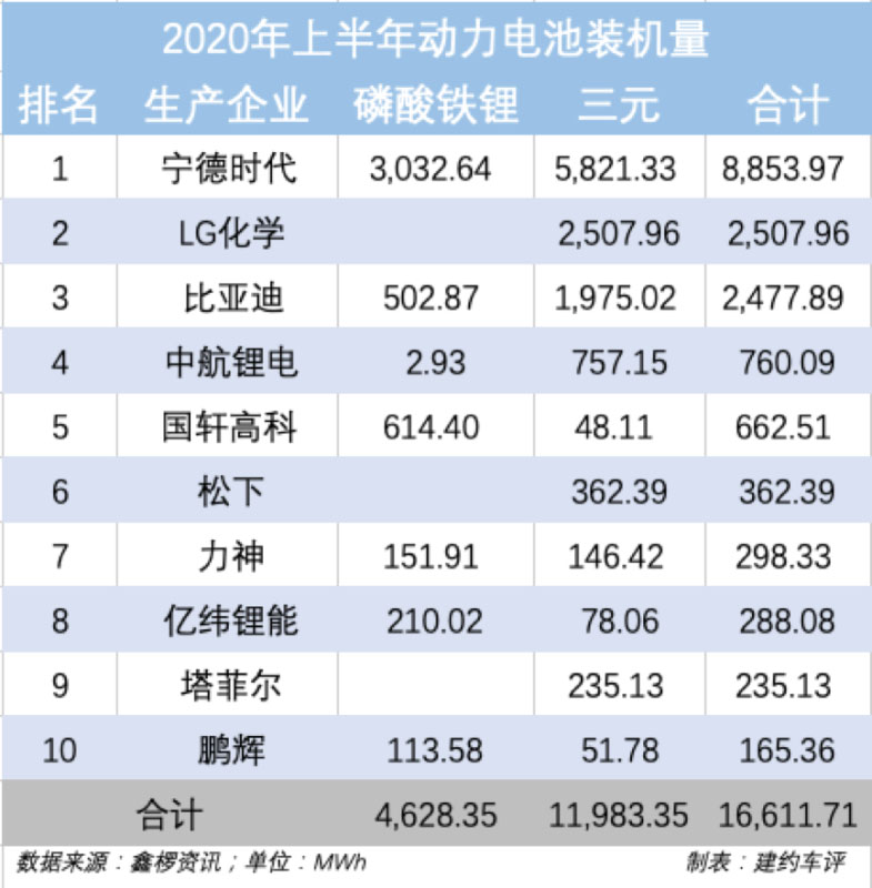 根據(jù)鑫欏資訊的數(shù)據(jù),2020年上半年動(dòng)力電池裝機(jī)量為17.43 GWh,其中前10廠商的市場份額達(dá)到了驚人的95.3%。