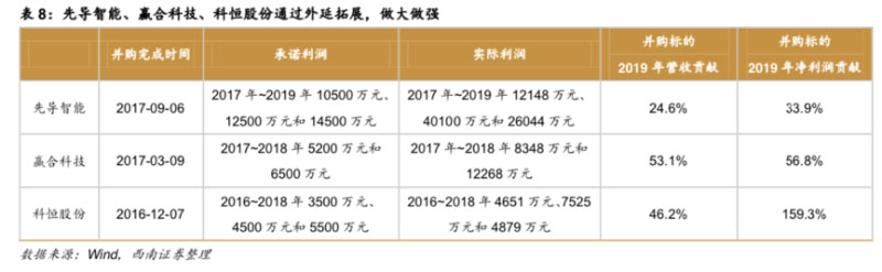 在合并了被收購公司的財(cái)務(wù)報(bào)表之后,2017年,先導(dǎo)智能的營收是上一年的2.49倍,利潤是上一年的1.86倍;贏合科技的營收是上一年的1.87倍,利潤是上一年的1.83倍。