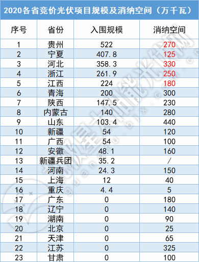 從上表不難發(fā)現(xiàn),貴州、寧夏、河北、浙江、江西5大競(jìng)價(jià)光伏項(xiàng)目大省,規(guī)模均超出了消納空間,而江蘇、廣東、遼寧、甘肅消納能力超1GW的省又無競(jìng)價(jià)項(xiàng)目入圍。