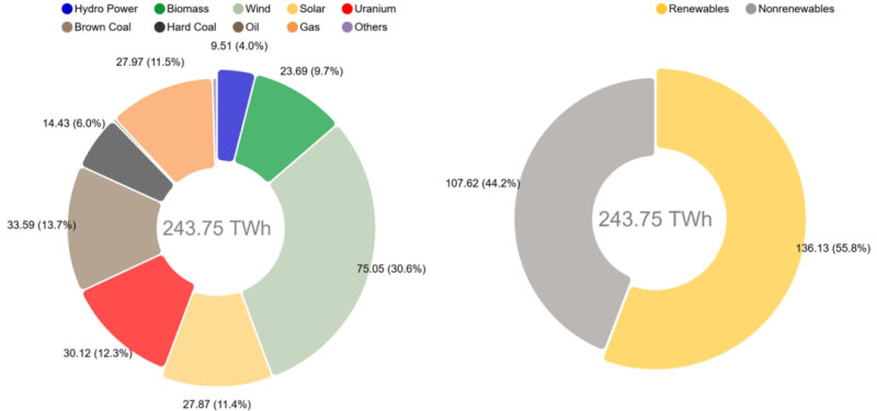 RE發(fā)電在德國發(fā)電份額上升至55.8%(ise.fraunhofer)