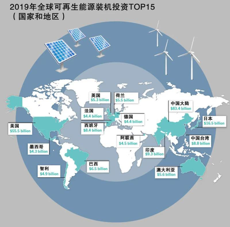 全球可再生能源裝機投資TOP15國家和地區(qū)排行