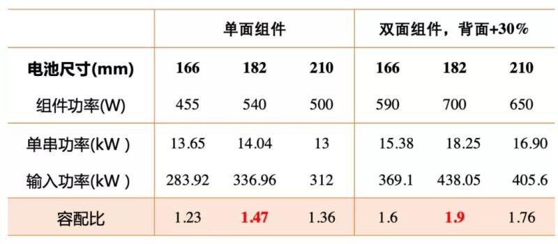 表1:采用不同新型組件可實(shí)現(xiàn)的容配比
