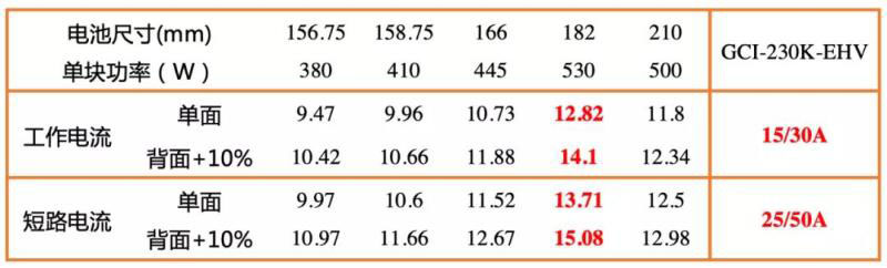 針對(duì)大功率、雙面組件這一趨勢(shì),GCI-230K-EHV對(duì)軟硬件進(jìn)行升級(jí)和改進(jìn),每串工作電流、短路電流最高可達(dá)15A和25A,完美適配大功率、雙面組件。