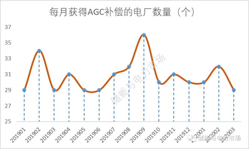每月獲得過AGC輔助服務(wù)補償?shù)臋C組平均數(shù)量為31臺,考慮到此為月度數(shù)據(jù),預(yù)計每日提供AGC調(diào)頻服務(wù)的機組應(yīng)該為20多臺,和廣東等區(qū)域類似。