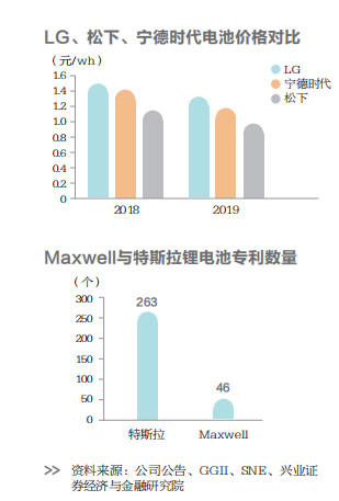 2019年2月,特斯拉宣布收購超級電容器制造商Maxwell的79%股權(quán)。據(jù)Maxwell介紹,其干電極技術(shù)能將電芯的能量密度提升至300瓦時/千克以上,未來還有望進一步增加至500瓦時/千克,如果將該技術(shù)應(yīng)用于特斯拉車型的電池中,單次充電續(xù)航將輕易突破1000千米。Maxwell的技術(shù)還可以使電池能量密度以2~3年為周期提升15%~25%,同時,電池成本將降低10%~15%。