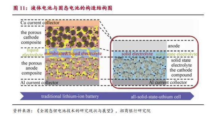 固態(tài)電池:下一代高比能鋰離子電池。目前鋰離子電池所用的電解質(zhì)為有 機電解液,因其熱分解度溫度低、易燃、有毒以及電化學(xué)窗口低,導(dǎo)致動力電 池安全性能和能量密度的提升存在一定的局限性。固態(tài)電池本質(zhì)上是用穩(wěn)定的 不燃無機固態(tài)電解質(zhì)代替易燃有機電解液,屬于材料層面(電化學(xué)體系)創(chuàng)新。