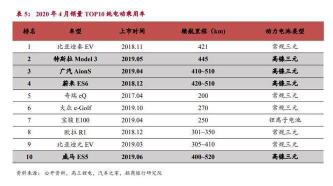 2020 年 4 月純電動乘用車銷量前十的車型中有 40% 搭載高鎳三元,占比較 高,均為中高端長續(xù)航版?;谌矫嬉蛩兀海?)成本:高鎳三元中鈷含量 較低,隨著上游產(chǎn)能提升和技術(shù)進步,材料的價格有望進一步下降;(2)安 全:通過材料改性、電池結(jié)構(gòu)優(yōu)化等策略,業(yè)內(nèi)已解決中鎳三元的針刺安全性 問題,隨著技術(shù)迭代,高鎳三元的安全劣勢有望得到改善;(3)下游需求: 明星車型 Model 3 長續(xù)航版采用高鎳三元,各車企長續(xù)航版車型為體現(xiàn)性能差 異,最佳的方式是采用高鎳三元電池,預(yù)計未來兩年高鎳三元仍是動力電池的 發(fā)展方向。