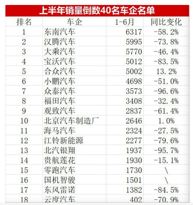 具體來看,根據上半年40家銷量墊底車企排行,東南汽車以倒數(shù)第40名的名次入榜,這家成立于1995年的自主車企算是中國汽車行業(yè)中的“老大哥”,誕生之際,憑借三菱技術的發(fā)動機,曾一時風頭無兩。2003年,銷量就達到了8.5萬輛,要知道,當時全國乘用車銷量才300萬輛左右。