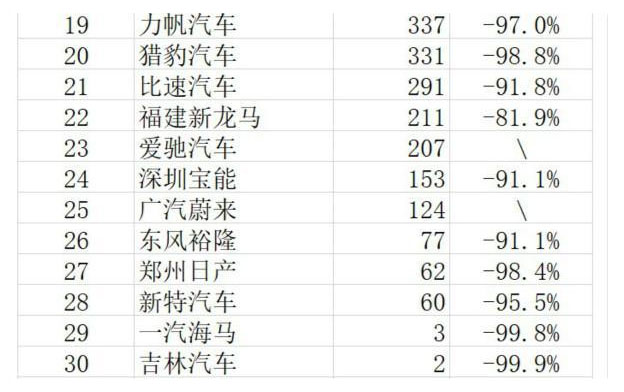 值得注意的是,銷量倒數(shù)40名的車企,目前統(tǒng)計數(shù)據仍為企業(yè)旗下乘用車銷量,例如福田汽車、江西五十鈴、鄭州日產等企業(yè)的商用車車型銷量并未統(tǒng)計在內,不過,從另一個角度而言,這也意味著上述車企“商轉乘”的戰(zhàn)略并未成功。