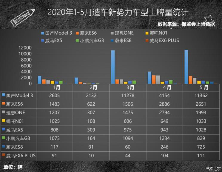 當(dāng)然所謂的“頭部”造車(chē)新勢(shì)力也不要高興太早,因?yàn)檫@里我們僅統(tǒng)計(jì)了國(guó)內(nèi)造車(chē)新勢(shì)力的銷(xiāo)量,如果將特斯拉也算入造車(chē)新勢(shì)力的行業(yè),那只能說(shuō)在它面前,大家都是弟弟了。國(guó)產(chǎn)特斯拉Model 3 5月份上牌量為1.1萬(wàn)輛,單月單車(chē)型銷(xiāo)量都超過(guò)蔚來(lái)汽車(chē)兩款車(chē)型前5個(gè)月的上牌量總和。