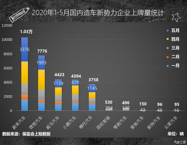 是考試那就必定有成績(jī)單,對(duì)于現(xiàn)存的造車(chē)新勢(shì)力車(chē)企來(lái)說(shuō)最直觀也是最有效的成績(jī)單就是銷(xiāo)量。1-5月份國(guó)內(nèi)乘用車(chē)新能源車(chē)型上牌量為22.6萬(wàn)輛,其中國(guó)內(nèi)造車(chē)新勢(shì)力的上牌量為3.3萬(wàn)輛,占比約14.6%,同比增長(zhǎng)約51.56%。