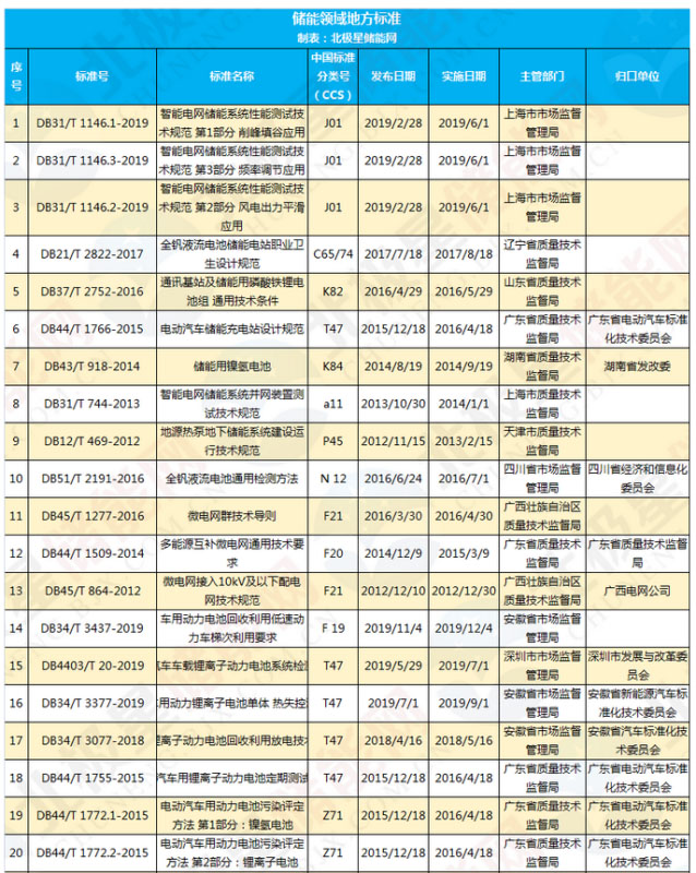 國家標(biāo)準(zhǔn)化管理委員會印發(fā)的《2020年國家標(biāo)準(zhǔn)立項指南》也指出要推動新能源發(fā)電并網(wǎng)、電力儲能等重要標(biāo)準(zhǔn)研制。2020年7月17日,國家能源局正式開啟了儲能試點示范項目申報,其示范目的也是要通過分析總結(jié)示范項目成功經(jīng)驗和存在問題,促進建立健全相關(guān)技術(shù)標(biāo)準(zhǔn)與工程規(guī)范。
