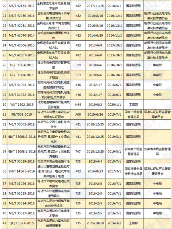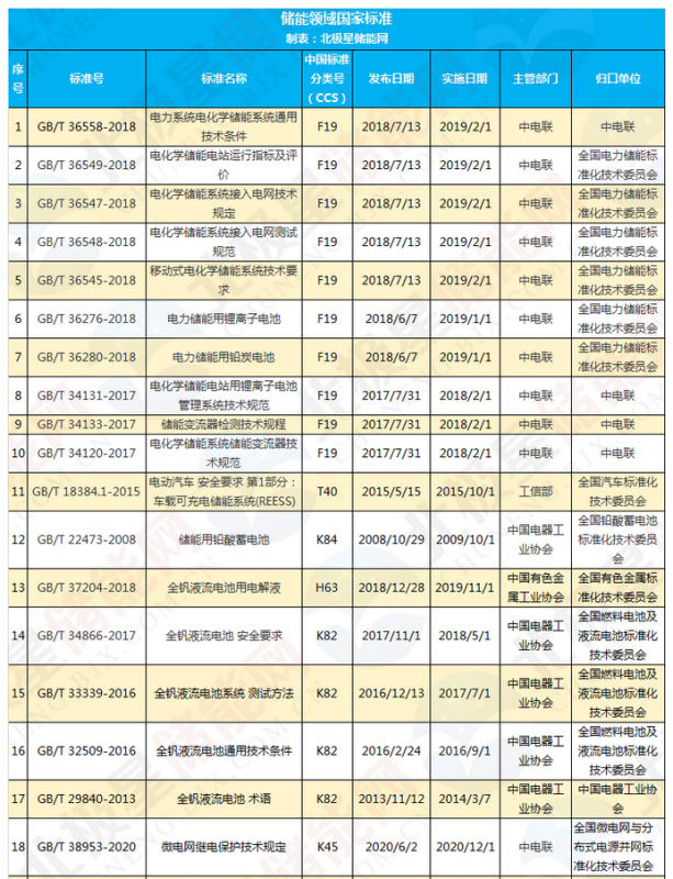 2020年1月,國家能源局、應(yīng)急管理部、國家市場監(jiān)督管理局聯(lián)合出臺《關(guān)于加強儲能標(biāo)準(zhǔn)化工作的實施方案》指出,到2021年推進建立較為系統(tǒng)的儲能標(biāo)準(zhǔn)體系,加強儲能關(guān)鍵技術(shù)標(biāo)準(zhǔn)制修訂和儲能標(biāo)準(zhǔn)國際化,并將建立儲能標(biāo)準(zhǔn)化協(xié)調(diào)工作機制、建設(shè)儲能標(biāo)準(zhǔn)體系、推動儲能標(biāo)準(zhǔn)化示范、推進儲能標(biāo)準(zhǔn)國際化列為四大重點任務(wù)。其中推動儲能標(biāo)準(zhǔn)化示范方面指出要鼓勵在儲能工程示范項目中開展標(biāo)準(zhǔn)應(yīng)用、驗證、研制,將成功的工程應(yīng)用經(jīng)驗轉(zhuǎn)化為標(biāo)準(zhǔn)。