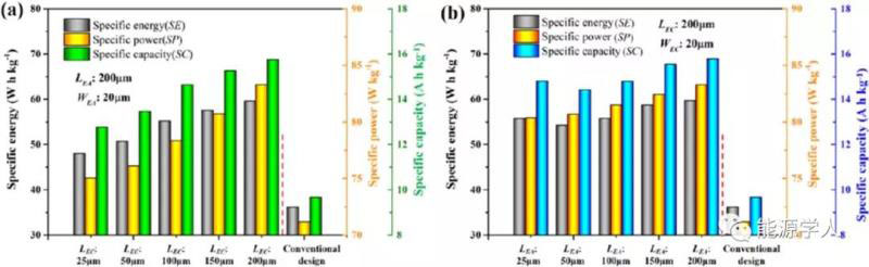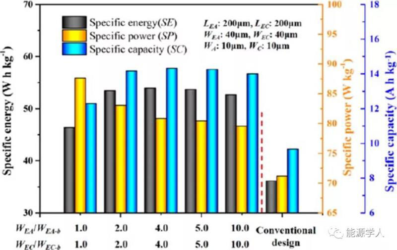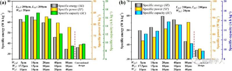 4)設(shè)計(jì)圖表明,通過自由更改電解質(zhì)通道的幾何參數(shù),優(yōu)化的比能量比常規(guī)設(shè)計(jì)的電池大78.73%。
