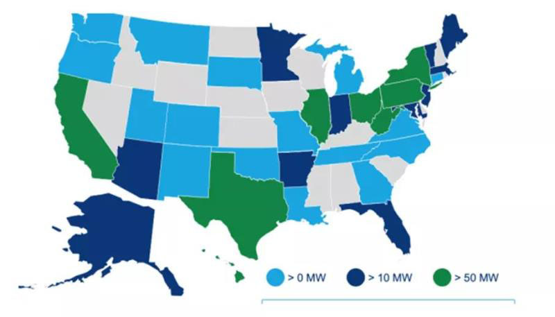 戰(zhàn)略規(guī)劃與法規(guī)方面,2020年1月8日,美國能源部長Dan Brouillette宣布啟動儲能大挑戰(zhàn)(Energy Storage Grand Challenge)以幫助開發(fā)下一代儲能技術(shù)并將其推向市場,該計劃旨在確保到2030年美國成為全球儲能行業(yè)領(lǐng)導者。美國前瞻性儲能政策的領(lǐng)導者是加州,加州在2013年就通過了一項計劃,要求所有的公用事業(yè)公司(IOUs)到2020年采購1325兆瓦的儲能。2017年,加州公用事業(yè)委員會又發(fā)布了第2868號法案,要求IOUs額外采購500兆瓦的分布式儲能。弗吉尼亞州和內(nèi)華達州也在2019年相繼提出儲能目標。目前,美國制定或已實施儲能發(fā)展目標的州已經(jīng)達到八個。同時,美國各州正在解決立法、行政命令、監(jiān)管程序等眾多問題,這些問題將影響儲能系統(tǒng)的總體成本和價值、儲能系統(tǒng)與電網(wǎng)的連接過程。僅在2019年,美國各州的立法機關(guān)就審議了30多項與儲能部署相關(guān)的法案,十幾個州的監(jiān)管委員會處理了一系列影響儲能部署的監(jiān)管程序。