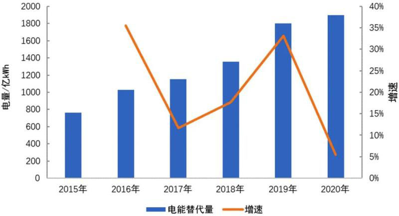 實施電能替代戰(zhàn)略可以提高全社會電氣化水平,提升居民生活水平和社會生產(chǎn)效率,緩解環(huán)境污染,保障我國能源安全。近年來,電能替代技術(shù)在多領(lǐng)域推廣應(yīng)用,替代規(guī)模不斷擴(kuò)大,替代電量以工農(nóng)業(yè)生產(chǎn)制造領(lǐng)域為主導(dǎo),電力供應(yīng)與消費領(lǐng)域、交通運輸領(lǐng)域、居民采暖領(lǐng)域及家庭電氣化領(lǐng)域協(xié)同發(fā)展。但實施過程中,依然存在經(jīng)濟(jì)性弱等制約因素,未來拓展電能替代廣度深度的難度加大。預(yù)計“十四五”期間電能替代依然保持較大規(guī)模,是拉動用電增長的重要力量。