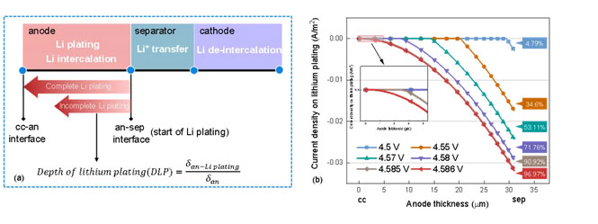 圖 3(a)給出了“完全析鋰”和“不完全析鋰”的圖解,并定義了析鋰深度(DLP),即發(fā)生析鋰的負(fù)極厚度與負(fù)極總厚度的比值。
