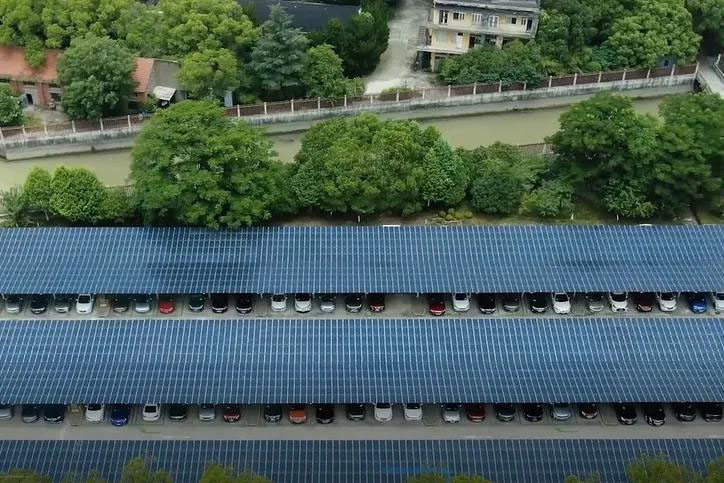 走進上海閔行工業(yè)區(qū),一排排湛藍色“光伏停車場棚”格外引人注目?!斑@是由薄膜光伏所覆蓋的停車場頂棚,既能遮陽避雨、方便停車,又可為新能源車充電,大大節(jié)約了工業(yè)區(qū)的電耗?!眹W(wǎng)上海綜合能源服務(wù)有限公司營銷總監(jiān)張宇說。