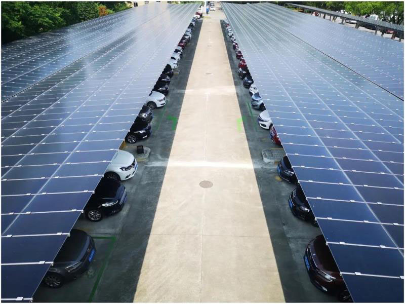 ▲ 位于閔行工業(yè)區(qū)上海電機廠內(nèi)的薄膜光伏車棚