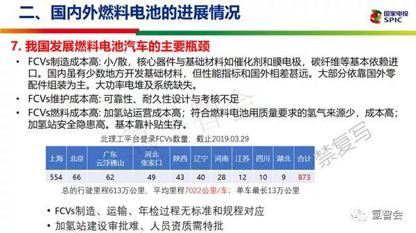 燃料電池主要的瓶頸,我們主要是成本高。燃料電池公司也很多,大家都很小、很散,核心器件與基礎(chǔ)材料如催化劑和膜電極、碳纖維等基本依賴進(jìn)口。國(guó)內(nèi)雖然少數(shù)地方開發(fā)基礎(chǔ)材料,但了性能和指標(biāo)和國(guó)外差距還是比較大的,大部分依靠國(guó)外零配件組裝為主,大功率電堆及系統(tǒng)缺失。FCVs維護(hù)成本,可靠性、耐久性設(shè)計(jì)與考核不足。燃料的成本高,主要是我們加氫站不多,還有最主要的問題就是我們的氫還是單軸(音),希望中石化、中石油這些企業(yè)我們聯(lián)合起來(lái)把氫和天然氣一樣從危化品里面剝離出來(lái)作為燃料來(lái)使用。