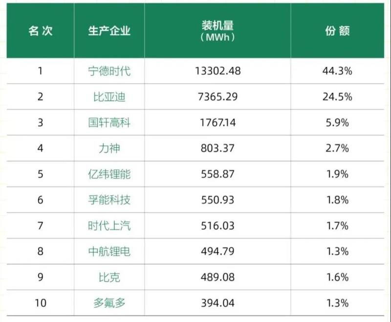 裝機量8511.3MWh,較去年同期13.3GWh下降接近40%,但其市占率仍接近50%,穩(wěn)居第一。產品覆蓋乘用車、客車、專用車領域,配套前五企業(yè)為蔚來、廣汽、理想、威馬、小鵬,并為一汽大眾、華晨寶馬、上汽大眾、廣汽豐田、北京現代等合資品牌配套。