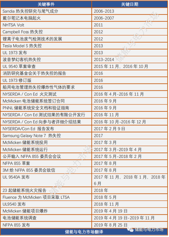 研究報告還總結了截至McMicken事故發(fā)生時,在電池安全方面已經(jīng)進行的相關研究,發(fā)布的標準以及法規(guī),如下表所示。