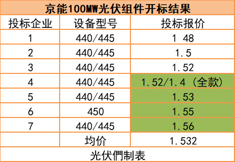 此外,在日前京能100MW光伏組件采購中,除了最低價之外,M6組件報價均回到 1.5元/瓦以上,均價為1.53元/瓦,基本與華電開標(biāo)價格相當(dāng)。