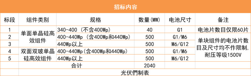 7月28日,中國華電集團(tuán)有限公司(以下簡稱“華電”)2020年單晶硅光伏組件集采開標(biāo),共計16家組件企業(yè)參與了此次投標(biāo),基本涵蓋了主流的一、二線組件梯隊。此次集采總?cè)萘抗灿?.04GW,分為五種組件規(guī)格。根據(jù)標(biāo)書,要求各投標(biāo)企業(yè)對5種規(guī)格分別報價,取平均價格測算得分。