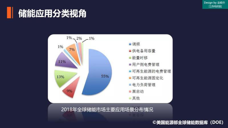 我們?nèi)绻且允窞殍b,我們做能源變革顛覆性技術(shù),現(xiàn)在大家都已經(jīng)達(dá)成了共識(shí),我們儲(chǔ)能是一項(xiàng)能源變革顛覆性技術(shù)。當(dāng)前的儲(chǔ)能應(yīng)用大概分類有哪些?這邊是美國能源部關(guān)于全球儲(chǔ)能數(shù)據(jù)庫做的分類,是2018年的市場分類,我們看到大概是分為調(diào)頻、供電備用容量、能量時(shí)移等等需求,我們可以看到這些應(yīng)用,大量的應(yīng)用都是在我們傳統(tǒng)的電力系統(tǒng)時(shí)代能夠想到的應(yīng)用,而當(dāng)儲(chǔ)能技術(shù)成熟了之后,我們理所當(dāng)然,認(rèn)為所有的應(yīng)用都要展開。