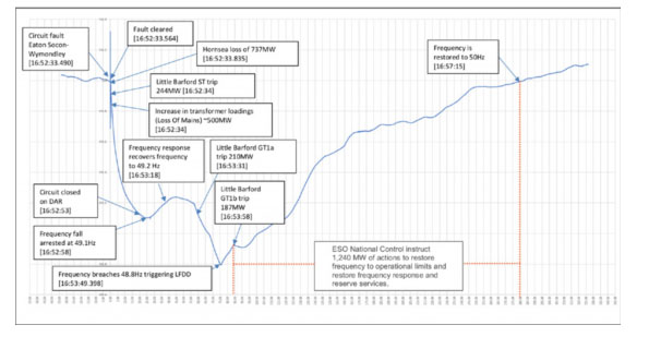 英國電網(wǎng)在2019年8月9日發(fā)生電網(wǎng)頻率下降事故